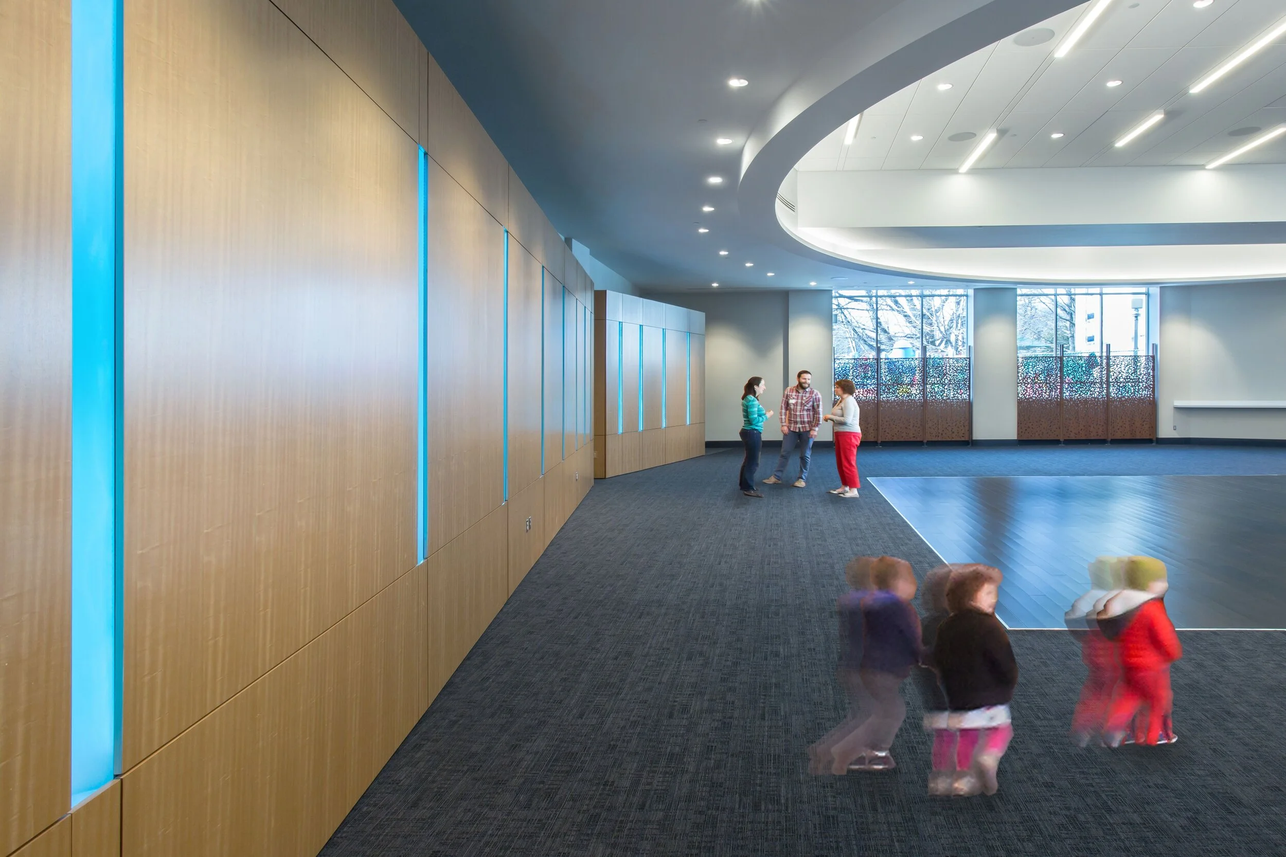 This eleven thousand square foot interior renovation project, for a very active synagogue in downtown Washington DC, included renovating their Social Hall, foyer, and the buildings multipurpose room. RNA worked closely with the synagogue committees to understand their needs and goals for the project, and worked collaboratively to build consensus, and transform dark, closed off, and dated spaces into ones that are more open, bright, and modern, that promote a strong sense of community and fellowship.